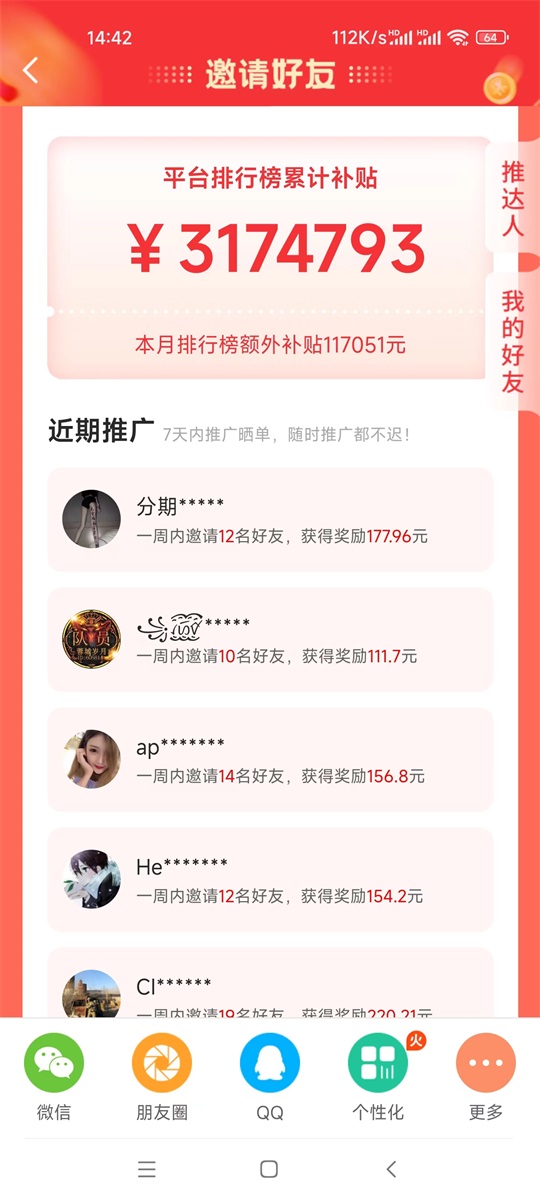 3、邀请好友:邀请一位有效好友可获得额外红包奖励。