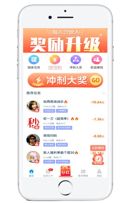 每天动动手指完成悬赏任务即可赚取丰厚利润,每天上万任务等您来做!邀请好友加入,让您不劳而获!